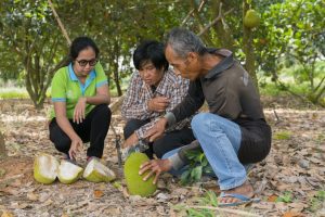 Een van de Thaise boeren die onderdeel is van deze groep is Khun Nipalin. Misschien herken je haar naam, want Khun Nipalin is naast jackfruitboerin vooral bekend als onze ‘ananaskoningin’. Ze is sinds het begin lid van de Fairtrade Pineapple Growers Group en zit momenteel ook in het bestuur.