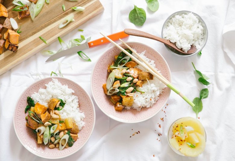 Je kunt deze groente ook toevoegen aan een Thaise curry zoals deze Thaise Massaman curry. Hiervoor roerbak je de gesneden blokjes aardappel in de pan samen met sperziebonen. Breng op smaak met een Massaman kruidenpasta en laat het geheel koken in 400 ml kokosmelk. Kook voor ongeveer zes minuten tot de groenten beetgaar zijn en voeg linzen toe.
