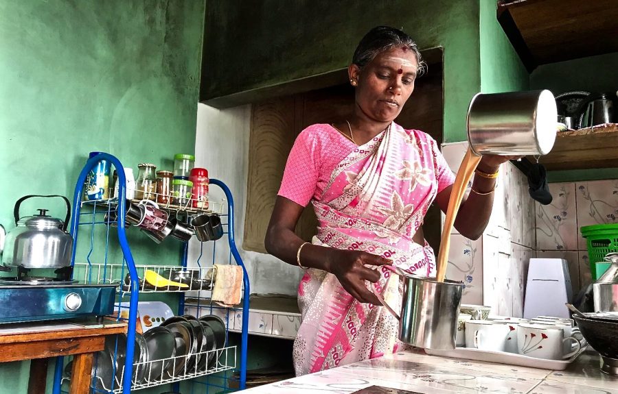 Op de theevelden praten de pluksters over het huishouden en de kinderen. Ze helpen elkaar als het nodig is en koken op zondag samen voor iedereen die het nodig heeft. Hoe gezellig het ook is, ze zorgen er wel voor dat ze alleen de beste blaadjes plukken: de bovenste twee en het knopje van de theeplant. Deze manier van plukken wordt ‘two leaves and a bud’ genoemd en levert de beste kwaliteit op. Maar dat mag je zelf proeven.