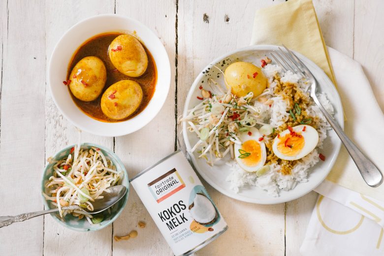 De reusachtige bladeren van de kokospalm steken scherp af tegen de strak blauwe lucht. Aruna klimt met snelle bewegingen omhoog en de rijpe kokosnoten ploffen in het hete zand. De melk van deze noten geeft jouw gerechten een romige smaak.