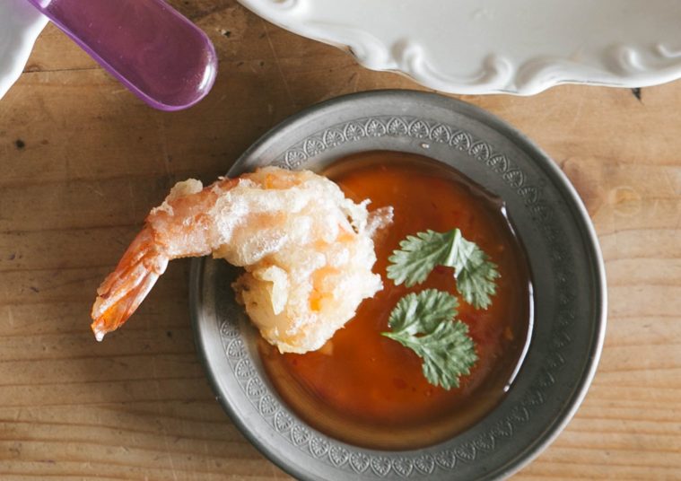 Met kruiden van Khun Orachan (kruidenboerin). Pikant en kruidig met verse gember en gebakken sjalotjes.