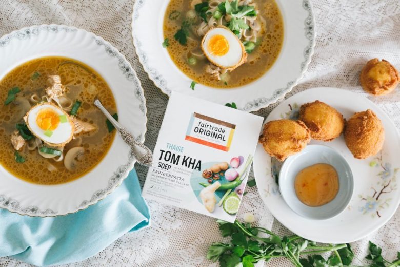 Onze kruidenleverancier Khun Orachan zet een dampende kom voor ons neer. We proeven voorzichtig van de hete Thaise kippensoep. Eén van haar meest geliefde recepten en de basis voor onze Tom Kha.