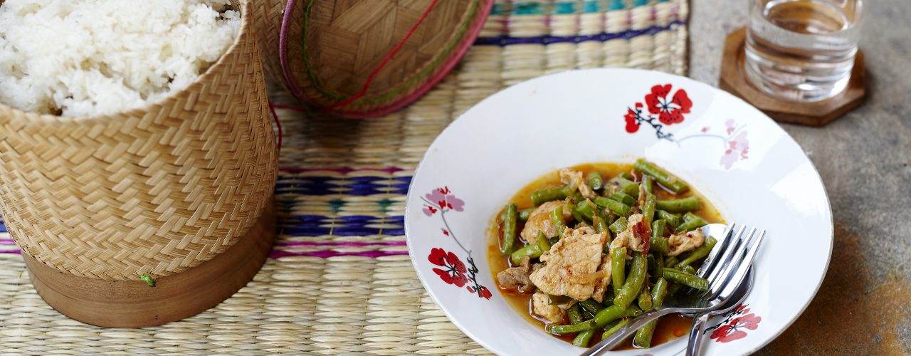De basis voor dit gerecht is dezelfde kruidenpasta als die voor Orapins Paneng curry, deze wordt nu geroerbakt in de wok met boontjes en varkensvlees. De pasta is vrij pittig, dus voeg deze vooral naar smaak toe.