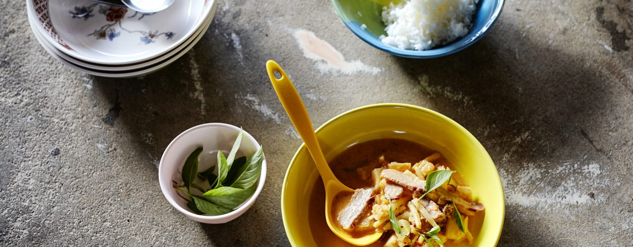 Het hart van de stam van de ananasplant is ook te eten en gaat in de originele variant van deze curry. Ananashart is hier niet te krijgen, dus vervang het met palmhart of bamboescheuten, die komen qua smaak en structuur aardig overeen.