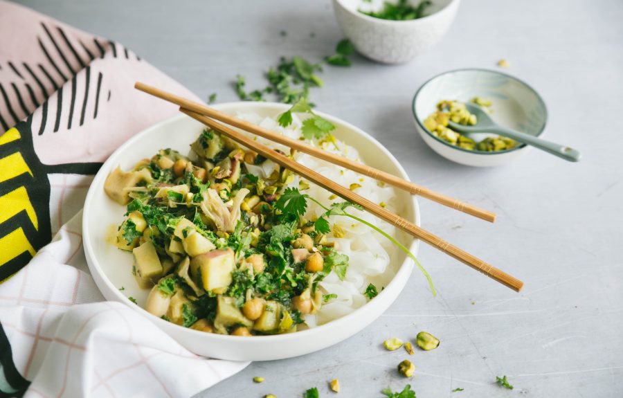 Je kunt het vruchtvlees makkelijk kruiden en marineren door zijn neutrale smaak. Zelf vind ik ‘t het makkelijkst en lekkerst om onze eigen curry kruidenpasta’s te gebruiken. De kruidenpasta’s zijn volledig plantaardig, dus dat combineert lekker op een ‘flexitarier dag’ zoals wij dat thuis noemen.